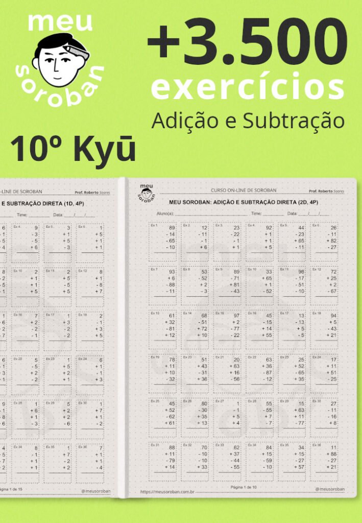 Este material contém mais de 3.500 exercícios de adição e subtração direta e é indicado para quem está no nível básico, ou seja, iniciando os estudos.
